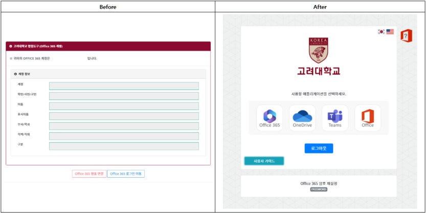 Starting from 10:00 AM on July 29, 2025, a new Office365 login web page will be implemented, featuring improved account management functions and a redesigned user interface (including English localization).